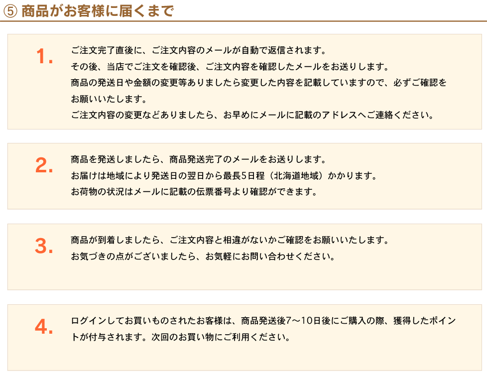 商品を探す カートに入れる カートを見る お客様情報の入力 商品がお客様に届くまで